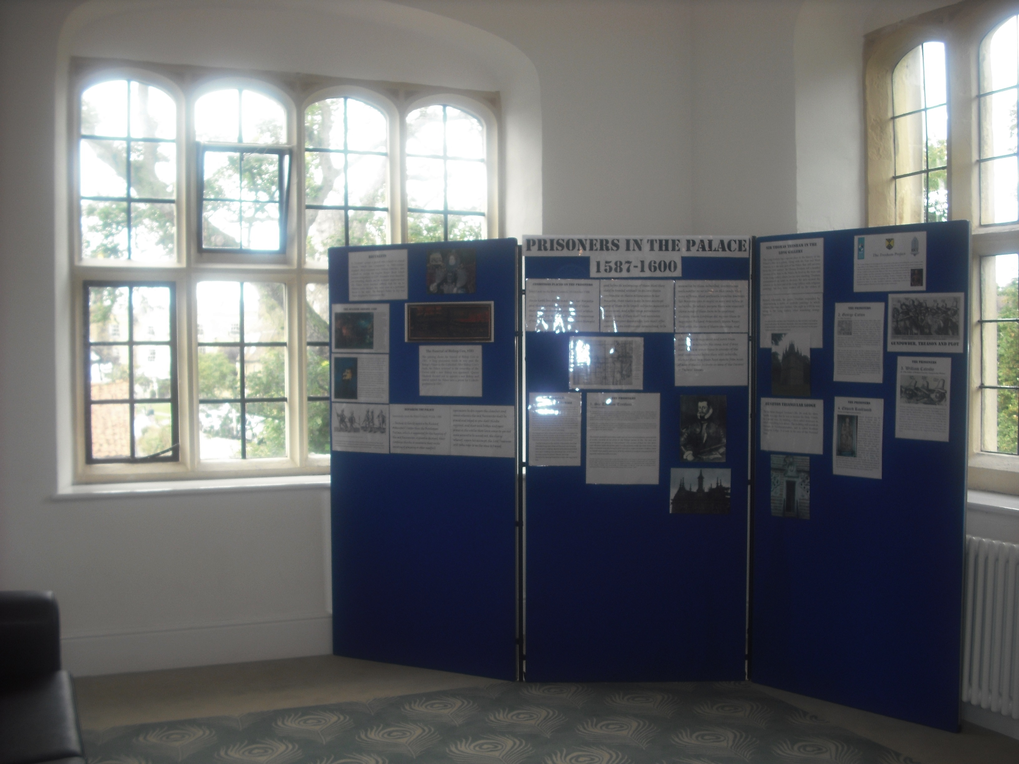 Today I managed the opening of the Old Bishop’s Palace in Ely for Heritage Open Day, with guided tours of the building from 10am to 4pm. I delivered a series of presentations on the history of the Old Palace to support the tours. A special feature of the day was a small exhibition, entitled ‘Prisoners in the Palace’, located at the west end of the Long Gallery next to the window which Sir Thomas Tresham decorated with secret emblematic paintings in the 1590s. The exhibition concentrated on four prisoners: Tresham, George Cotton (translator of the ‘Japonian Epistles’), Edward Rookwood and William Catesby.