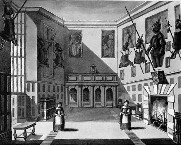 Inspired by an excellent article by Nicola Miller on ghost stories of Suffolk, I thought I would write a short post on one of the ghost stories I have unearthed, which is described in detail on pp. 105-108 of my English Catholics and the Supernatural. The story is unusual because it is accompanied by an illustration – a mezzotint (yes, if you know your M. R. James stories you should already be getting a chill up your spine). Illustrations of ghosts from the period in question are extremely unusual, and when they do occur they are usually satirical. There is nothing funny about this mezzotint, which dates from 1807 and depicts the ghosts of two women emerging from portraits at the end of the great hall of Coldham Hall and walking towards the staircase. The illustration was commissioned by Sir Thomas Gage, 7th Baronet of Hengrave and Coldham who owned the house, although at the time the ghost sighting took place Coldham Hall, the ancient family home of the Rookwoods, was occupied by a tenant called General Hammond. One night, Hammond’s servant was carrying a tray upstairs when he dropped it with a great clatter. When asked why, he described the scene that was later depicted in the mezzotint. One of the curious features of the servant’s description is that the women who came from the portraits were not dressed like the women in the portraits, who are both nuns of the seventeenth century. The women depicted in the mezzotint seem to be in the secular dress of the same period.