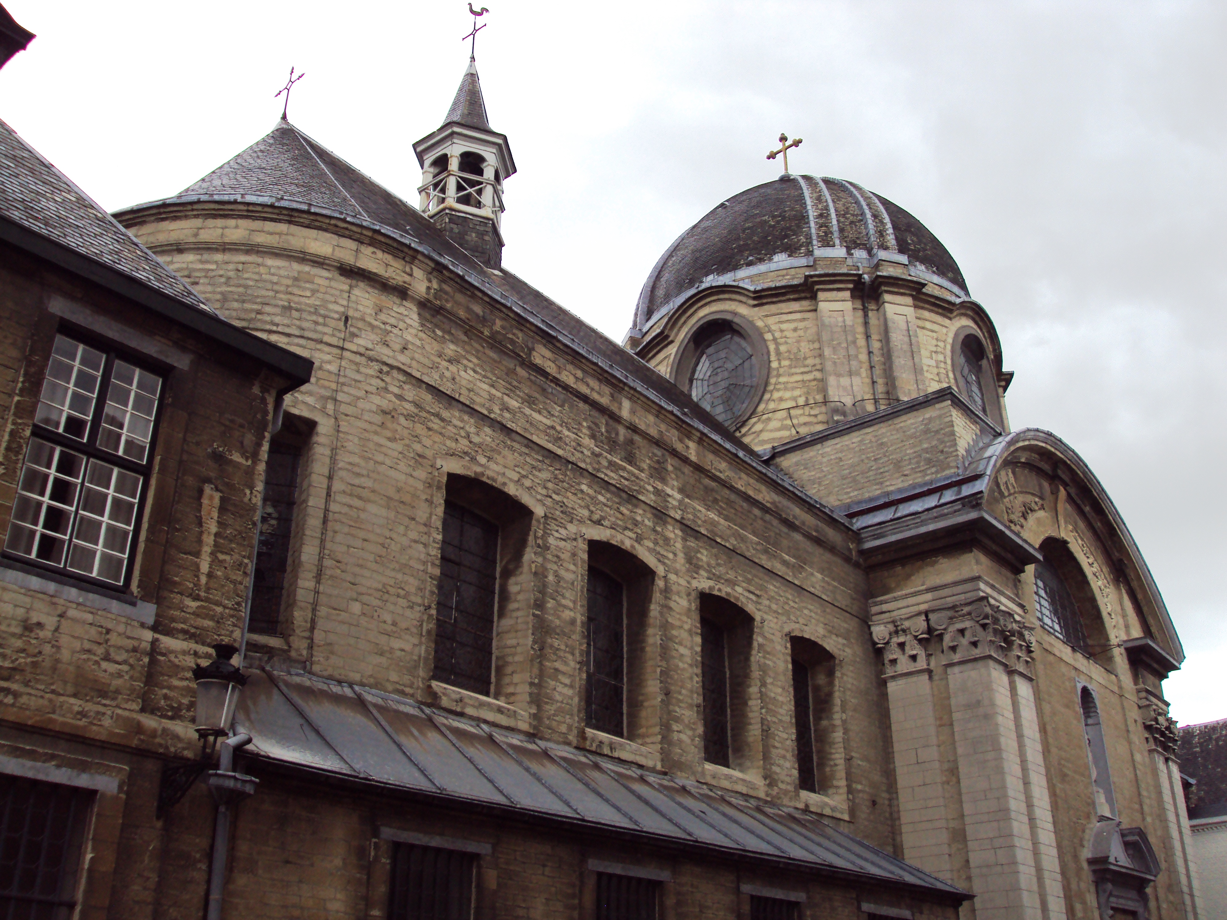 The English Convent is located on the north side of the Carmerstraat, a long road that leads from one of the inner canals in the centre of Bruges to the very edge of the old city, which is ringed by raised banks with windmills on them (the windmill at the end of the Carmerstraat, the Sint-Janshuys windmolen, is one of the few still operating). The location is far from central, which is what one would expect of a plot of ground granted to a few English exiles. The conventual church is the only domed structure in the city, and was built with its south side right against the Carmerstraat; the main entrance to the convent is a little courtyard located to the east of the church which leads to a parlour and, beyond a grille, the remainder of the convent. I am very grateful to Sr Mary Augustine for giving me a very informative guided tour of the church.