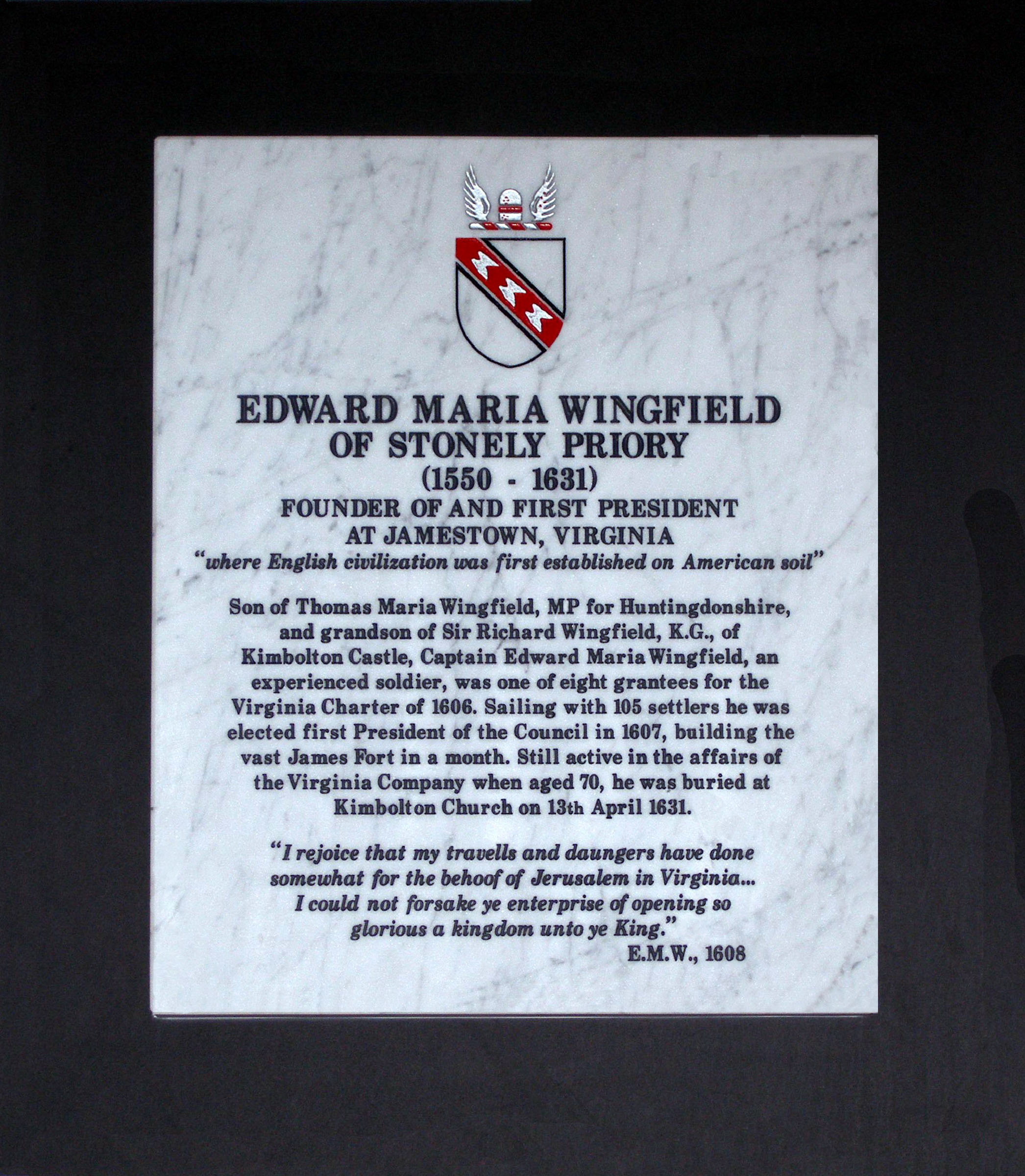 In 1605 the Catholic explorer James Rosier (1573-1609), who was born at Winston in Suffolk, began exploring the coast of Maine on a mission funded and patronised by Sir Thomas Arundell (later Lord Arundell of Wardour) to find a suitable site for a Catholic colony. Rosier was born a Protestant, but converted to Catholicism when he spent time in the household of Sir Philip Woodhouse at Kimberley Hall in Norfolk. However, the exposure of the Gunpowder Plot put paid to Arundell and Rosier’s plans. Nevertheless, English Catholics remained interested in the idea of an American future, and a key member of the expedition to found the first successful English colony in North America, Jamestown, was a Catholic. This was Edward Maria Wingfield, who was a cousin of the Suffolk-born explorer Bartholomew Gosnold. Wingfield himself came from Stoneley, Huntingdonshire (now part of Cambridgeshire). Born in 1550, he served as a soldier in Ireland and the Low Countries before becoming involved in the Virginia Company via his kinship with Gosnold. He sailed in the initial expedition to Virginia and, on arrival, was elected the first President of the Virginia Colony (and thus arguably the first American President) on 13 May 1607. As such, he was the senior representative of King James I, but he held the post only until September; famine and disease ravaged the fledgling colony and Wingfield was held responsible. The fact that he was a Catholic while most of the settlers were loyal Protestants cannot have helped matters.