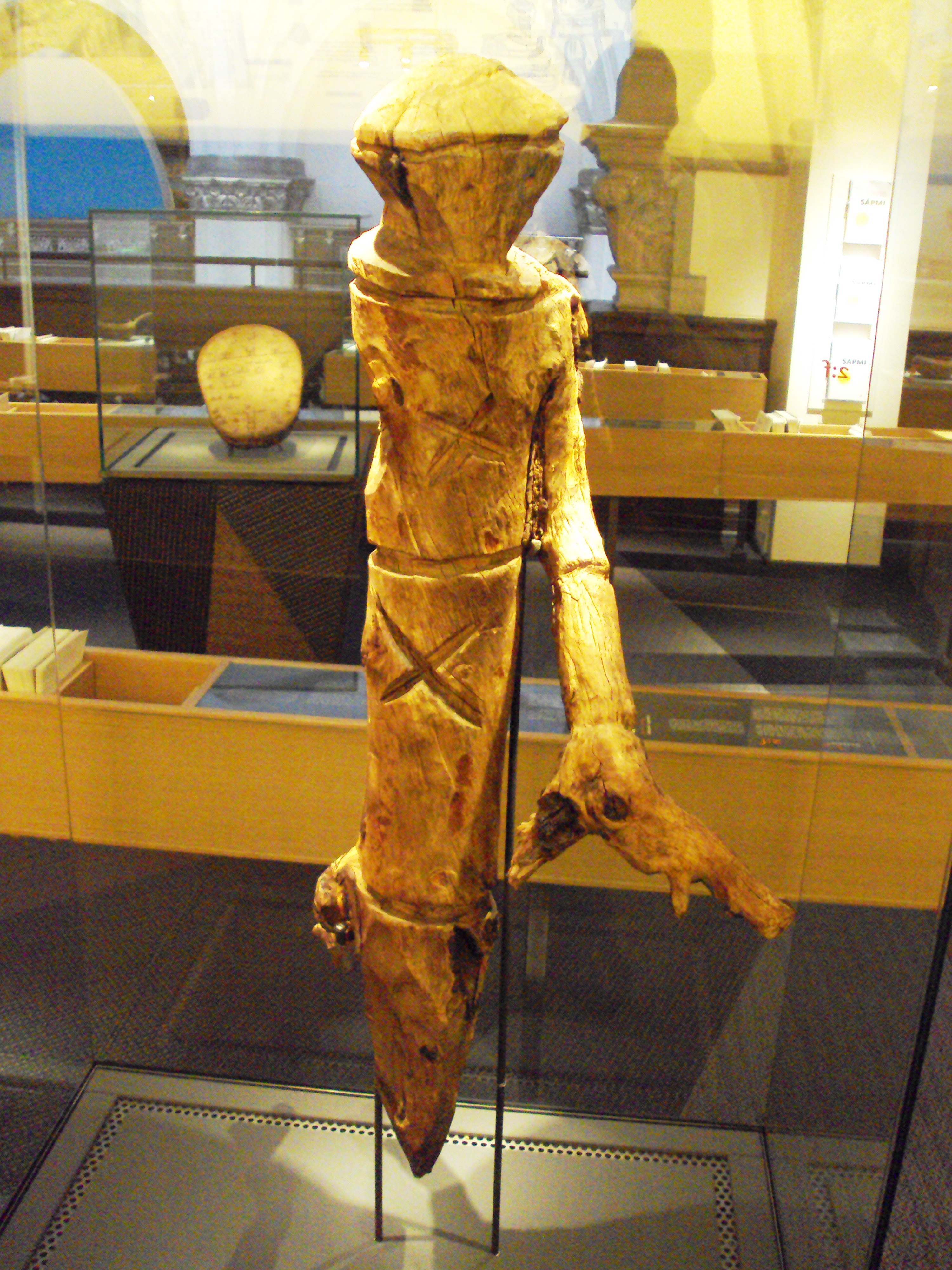 The presence of the sieidi in the museum’s collection is now controversial – which the museum readily acknowledges – but such anxieties do not prevent the sieidi from being displayed. The sieidi reminded me of the handful of surviving Bronze Age and Iron Age wooden idols from the British Isles – except that whereas in the latter case we can only imagine the religious beliefs that may have inspired them, in the case of the Sami artefacts in the Nordiska Museet there seems to have been a deliberate effort to deprive the Sami of their beliefs by removing their material culture. In earlier centuries that removal would have taken the form of destructive iconoclasm; when, from the end of the nineteenth century onwards, the folklore movement made iconoclasm unthinkable, the ‘historicisation’ of actively used sacred objects acted almost as a modern version of iconoclasm. Artefacts like the troll drum and the sieidi were safely removed to museums and thereby de-sacralised.