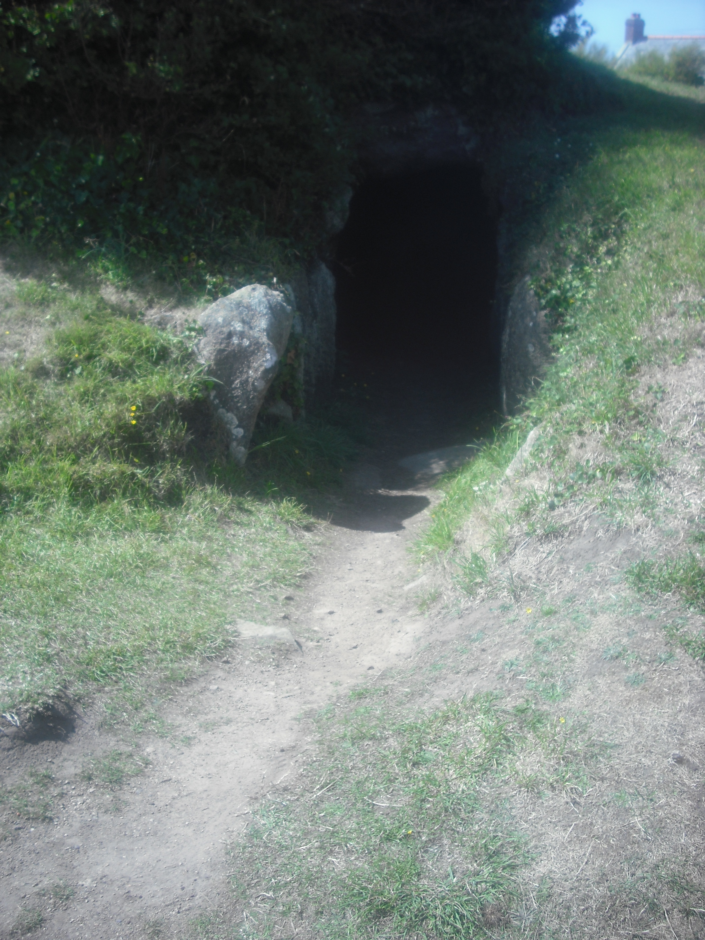 I can only speculate on what might have motivated someone to leave the figurine, but on one interpretation the ‘offering’ seemed to go beyond the folklore associated with the passage tomb (which portrays it as a home of the fairies and an entrance to their kingdom) and spoke to someone’s need to turn the tomb into a place of worship, focussed on a cult image. I was reminded of the controversial ‘Grimes Graves Goddess‘, the apparent chalk figure of a Neolithic fertility goddess found during excavations of the prehistoric flint mines in Norfolk in the 1930s. Ever since its discovery there has been doubt as to whether the ‘goddess’ was a hoax intended to fool the excavator. The idea that a cult-image should be found at a prehistoric site – even when that site is a mine – certainly seems to reflect twentieth-century perceptions of prehistoric people (not to mention ideas about goddess-worship current in archaeology at the time). Like Grimes Graves, Creux ès Fées is unlikely to have been a place of worship in the sense of the location of a cult image. Contemporary pagans are just as likely as archaeologists to impose on ancient sites their own perceptions of what ‘pagan worship’ should look like, informed by cultural prejudices specific to their own time.
