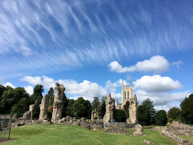 In the interview, I explained that the new book is the first to tell the complete story of the Abbey from foundation to dissolution, and expressed my hope that the book will make people already familiar with the Abbey much better informed about it. The sheer size of the Abbey Church – at least 13,700 square metres – is not appreciated by many people, and made it the largest complete church in the world at the time it was demolished (St Peter’s Basilica, which is bigger, was just being built). I explained how the Abbey accrued vast wealth from the donations of pilgrims and from landholdings as far afield as Northamptonshire, Essex, London and even Normandy, but suggested that the Abbey gave far more to the local area than it ever took. Where it had been a major royal centre, the dissolution turned Bury into a marginal provincial town, and the town’s economy did not recover until the eighteenth century.