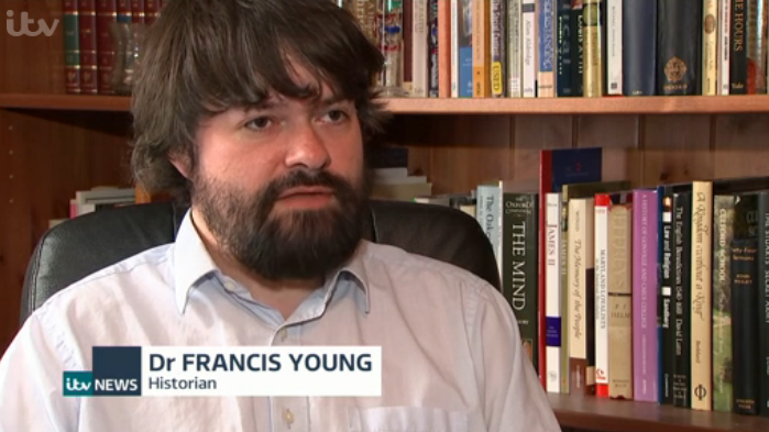 A local story that has been blowing up in the national media over the last few days is the speculation that St Edmund might be buried under the tennis courts behind the east end of the ruins of the abbey church in Bury St Edmunds. It all started with an announcement by Cllr Robert Everett of St Edmundsbury Borough Council, reported in the East Anglian Daily Times, that agreement had been reached about moving the tennis courts to an alternative site, which would allow an archaeological investigation of the area. Yesterday I was interviewed by both The Daily Telegraph and BBC Radio 5 Live (listen from 21:31) about the prospects of finding St Edmund’s body. Today I was interviewed by BBC Radio Scotland and ITV Anglia News, and The Times, The Daily Mail, The Daily Mirror and Christian Today picked up the story. A snippet of my interview with ITV’s Nina Nannar appeared on ITV News at Ten.